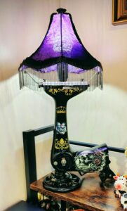 The end result. A lamp that exceeded our expectations of design in meeting our slightly gothic goals, and a functional piece of art.