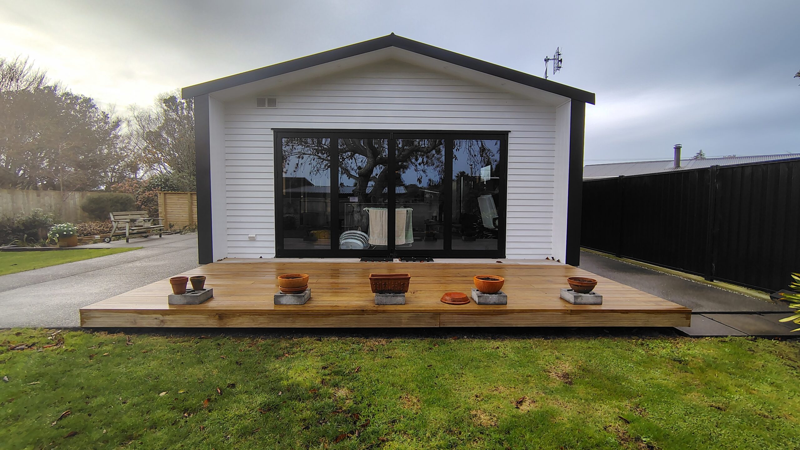 Our new build had a deck, too hot in summer and too cold and wet over winter for any real use. We preferred to sit in the garden or use the gazebo at the back of the property that has an awesome view of Taranaki Maunga. The other issue that we didnt want to drill into or damage the exterior cladding on the house so the catio would need to be free standing and not reliant on support off the house.