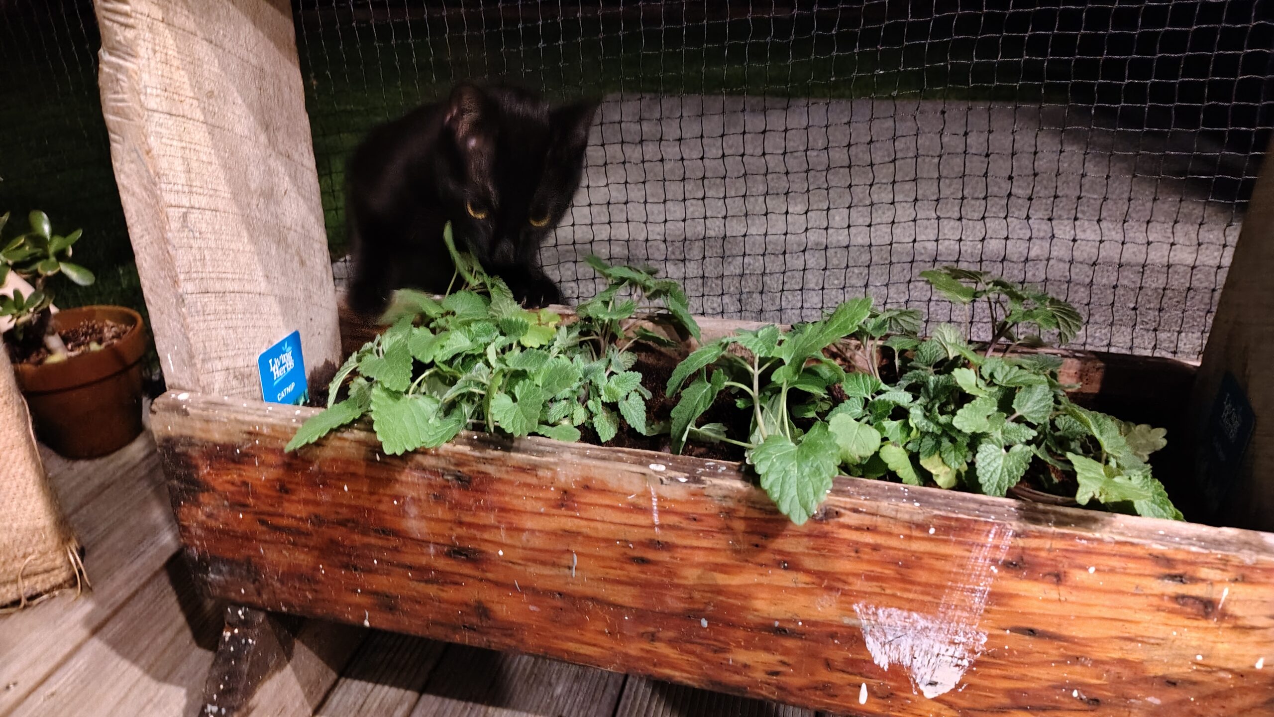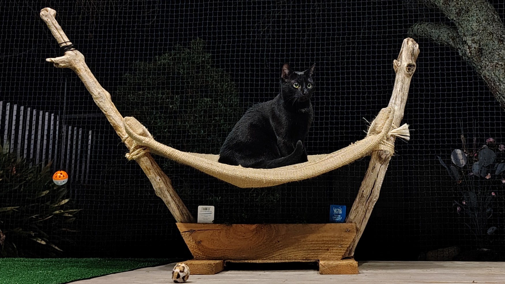 Our solution for our foster failure (we adopted) cat Laila who was terrified of her own shadow and feared open spaces, let alone open doors. She also frightened easily so to keep her safe, and to keep the many native birds who visit our property safe, we built Laila a catio. The catio made use of a redundant deck area, created a safe place for Laila, a great mood lit outlook for us and added to the plant life surrounding us.