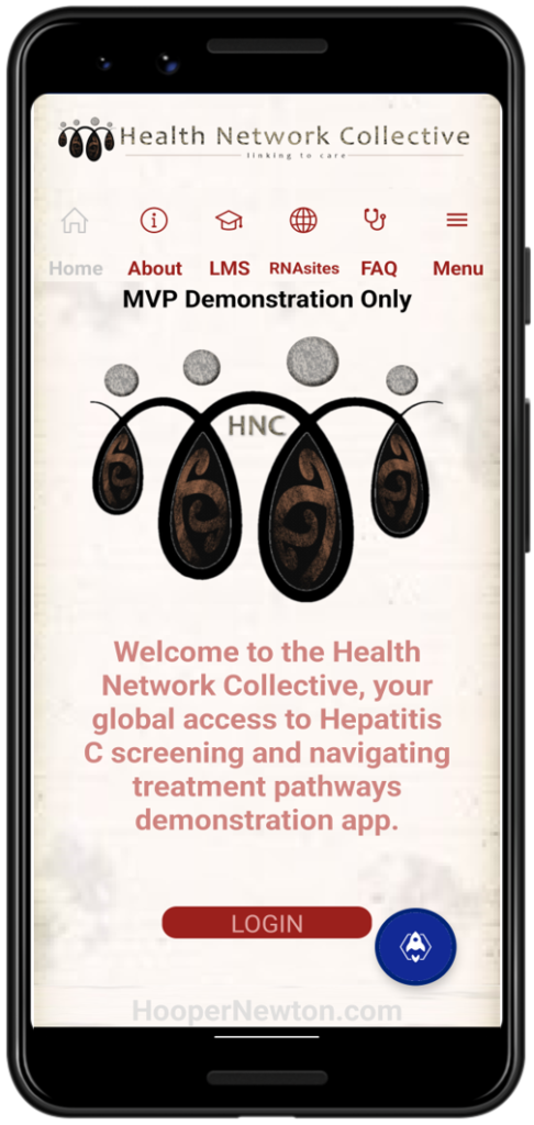 - Home page: Introducing Health Network Collective and what the apps designed for with basic menu for public access.