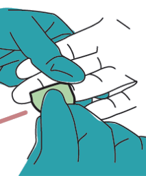 Gently squeeze your wai ora’s finger and allow a drop of blood to form. This is best done with our wai ora hand below the level of their heart, forearm flat or on a slight downwards angle. This does take some practice, we don’t want a running stream, just a nice drop. If it runs, wipe away and gently squeeze again to get that drop forming.