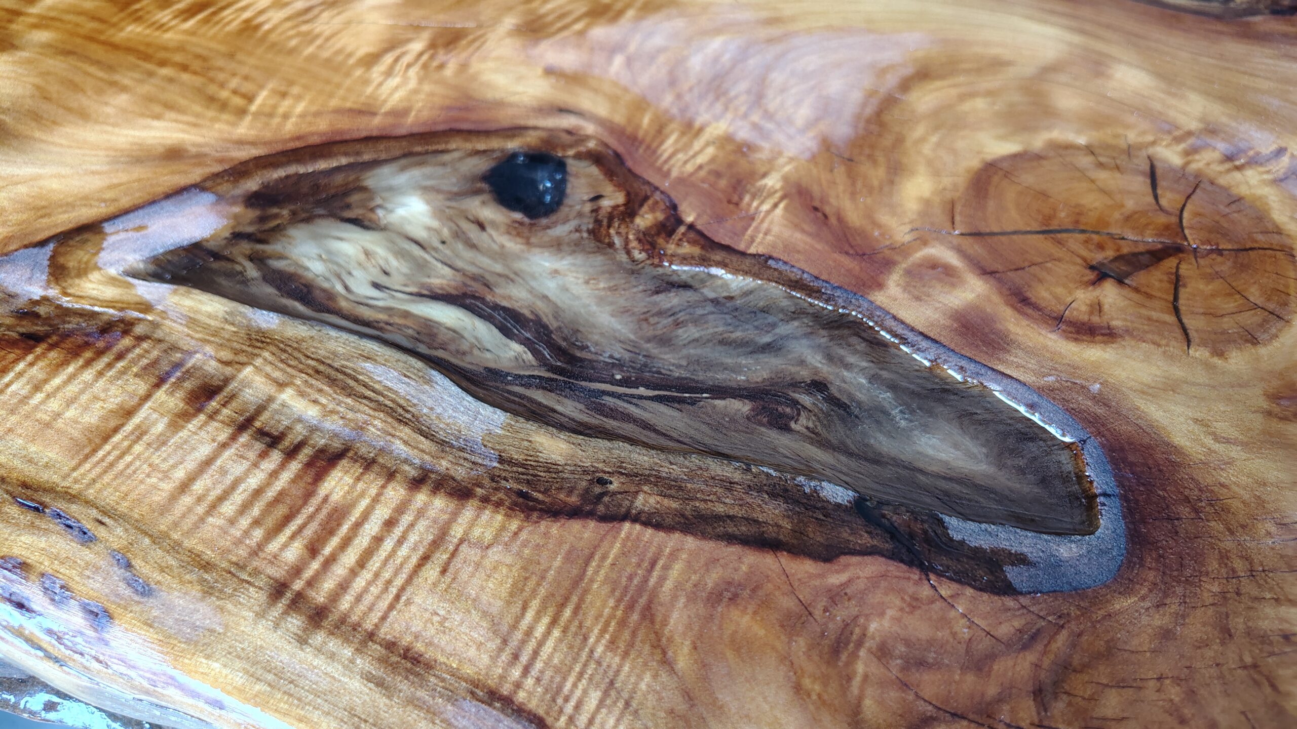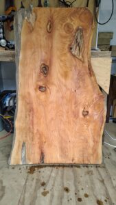 Relatively simple, but time consuming. The slab had to be cut to size (by hand) and then adys of sanding with an orbital sander, starting with 40 grit and working down to 120. Epoxy needs a rough surface to best adhere to which is a strange concept when trying to get a sleek glass like finish – the epoxy does that for you.