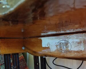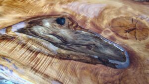We fashioned a frame from living edge beams to attach the legs, pre-drilled and assembled then stripped to spend a weeks applying coats of epoxy resin to achieve the desired finish. We added in redwood feet to add some contrast.
