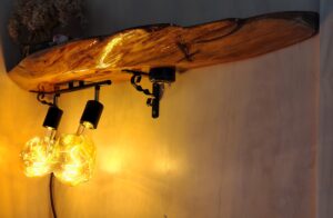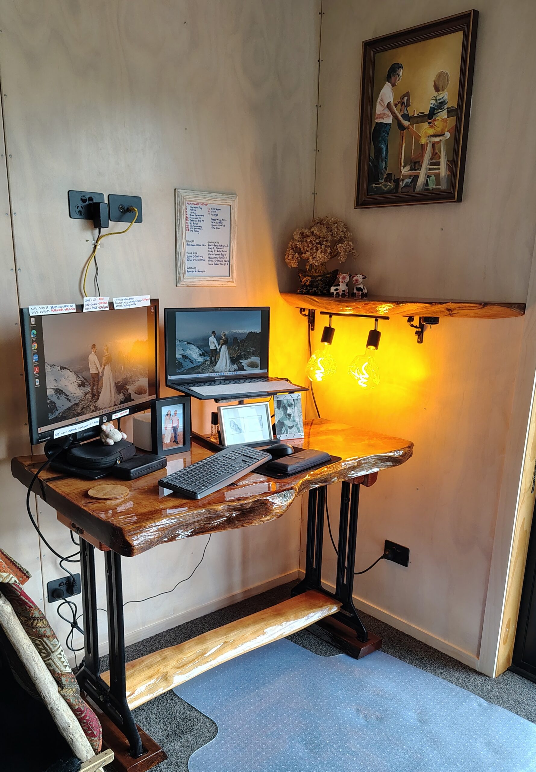 Nova, a living edge desk workstation and shelf incorporating lighting that fits into our style and living space.