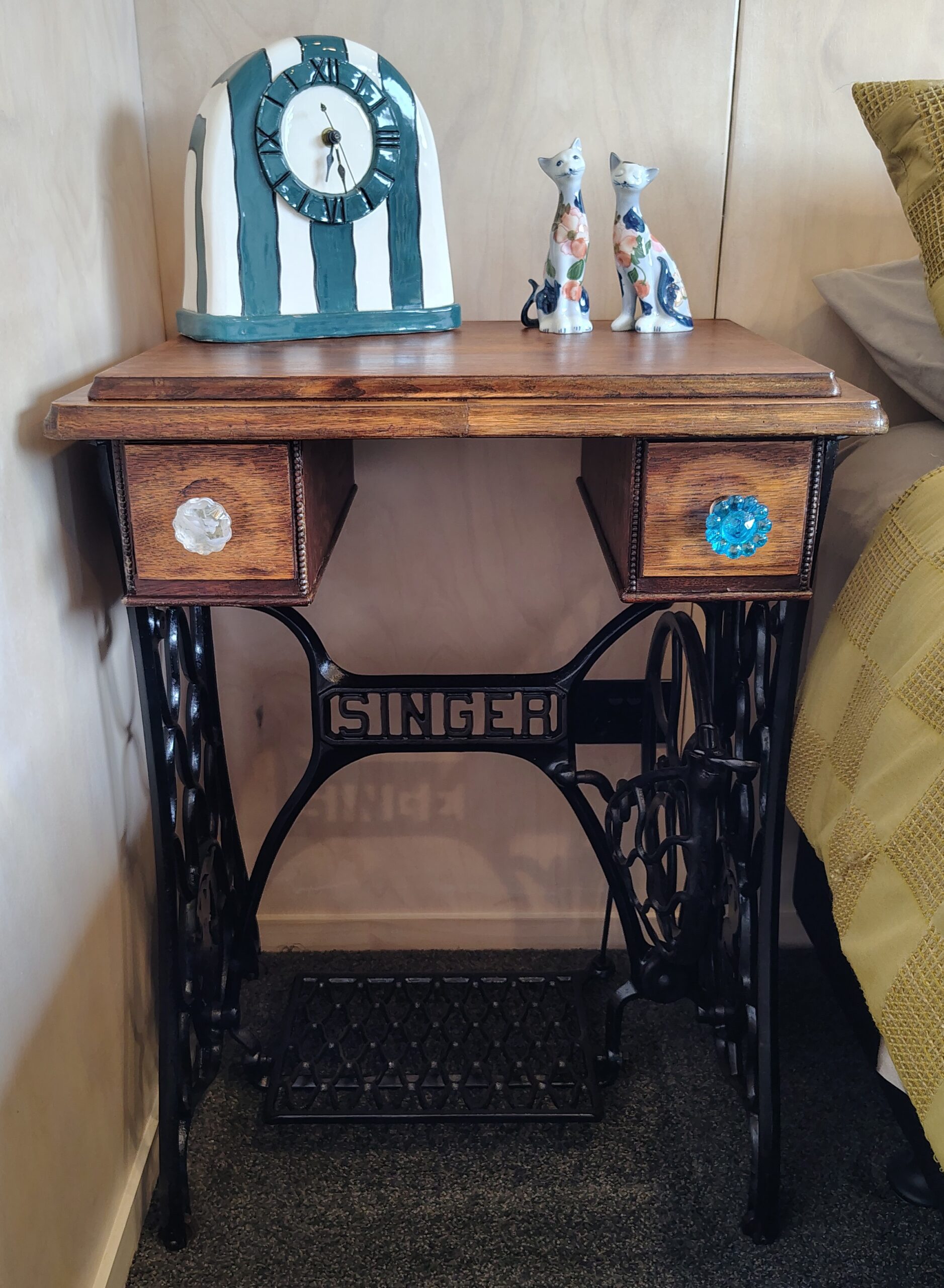 To find a better aesthetic balance in our spare bedroom we decided to make a 'same same but different' bedside table to match Genesis. Traceys design for Phoenix based on a more compact simple version that would still match.