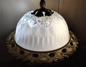 The shade was another trademe deal. A 1950's Spanish manufactures ceiling fixture made from brass and cut glass. The whole unit weighed in a just under 4kg and was designed to be installed the opposite way we intended to use – so a few modifications were needed. The brass hadnt had a clean since who knew when and the glass had a few challenges to be met in cleaning!