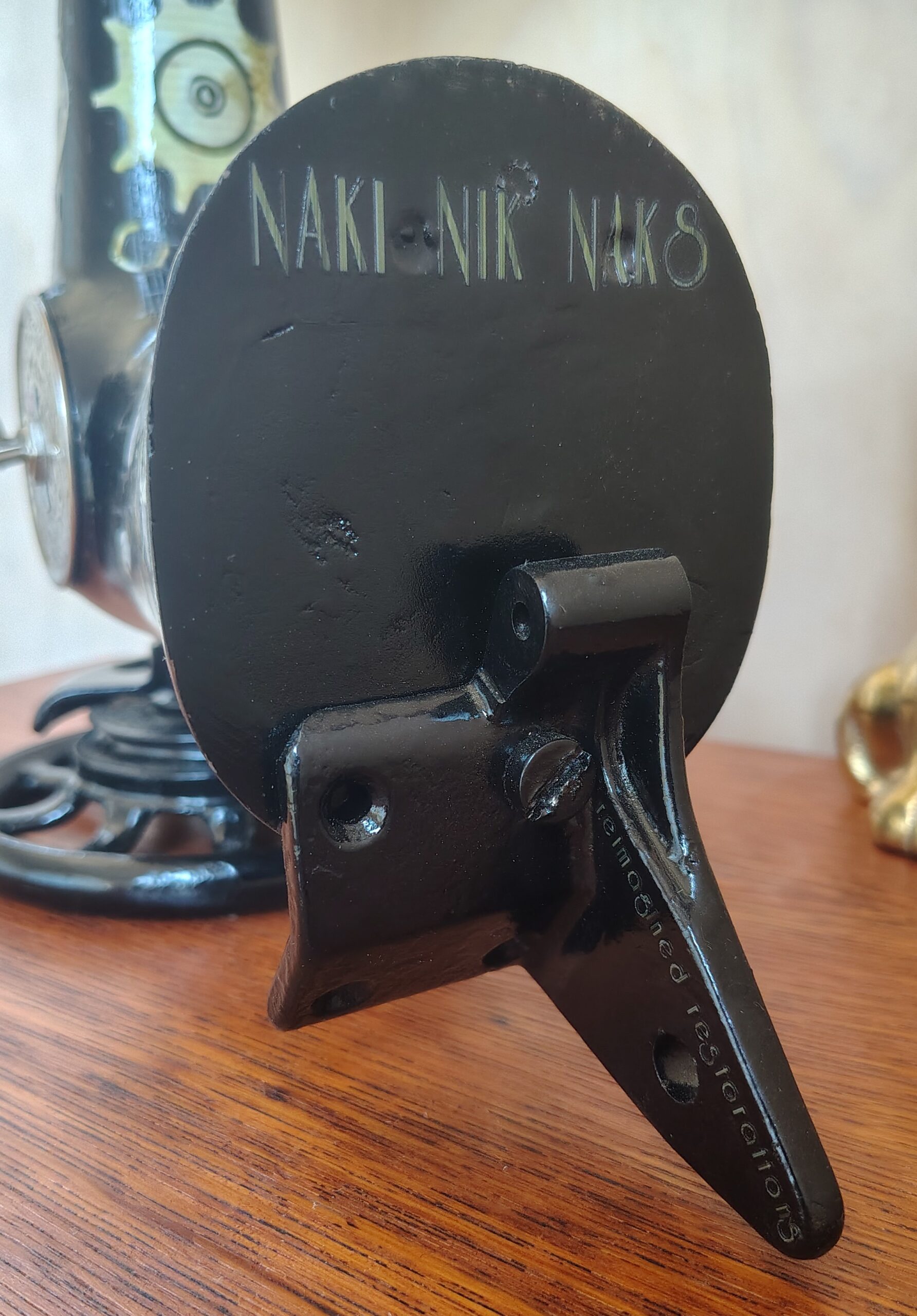 The cast work we attacked with scrapers, metal brushes and soapy water before applying coats of CRC rust converter and primer, the existing decals and art work really were not salvageable sadly. Once back to metal it was a coat or three of black matt spray enamel covered with a few coats of clear acrylic once the decals and art work were applied. And the chrome parts restored to shiny by rubbing with scrunched up tin foil and white vinegar.