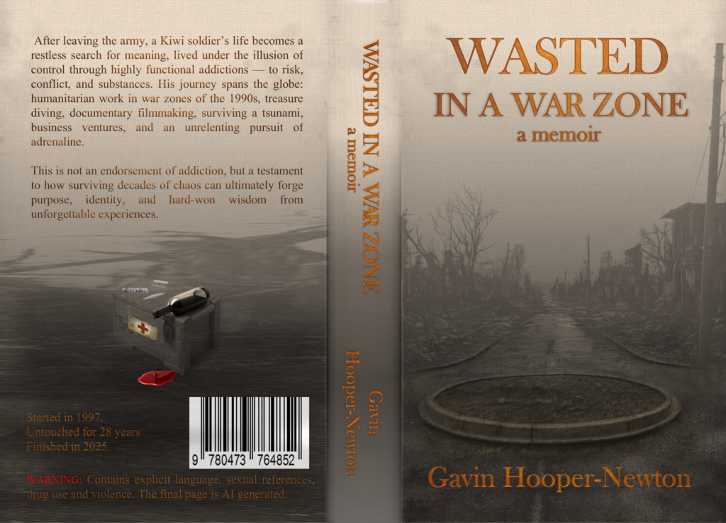 After leaving the army, a Kiwi soldier’s life becomes a restless search for meaning, lived under the illusion of control through highly functional addictions — to risk, conflict, and substances. His journey spans the globe: humanitarian work in war zones of the 1990s, treasure diving, documentary filmmaking, surviving a tsunami, business ventures, and an unrelenting pursuit of adrenaline.